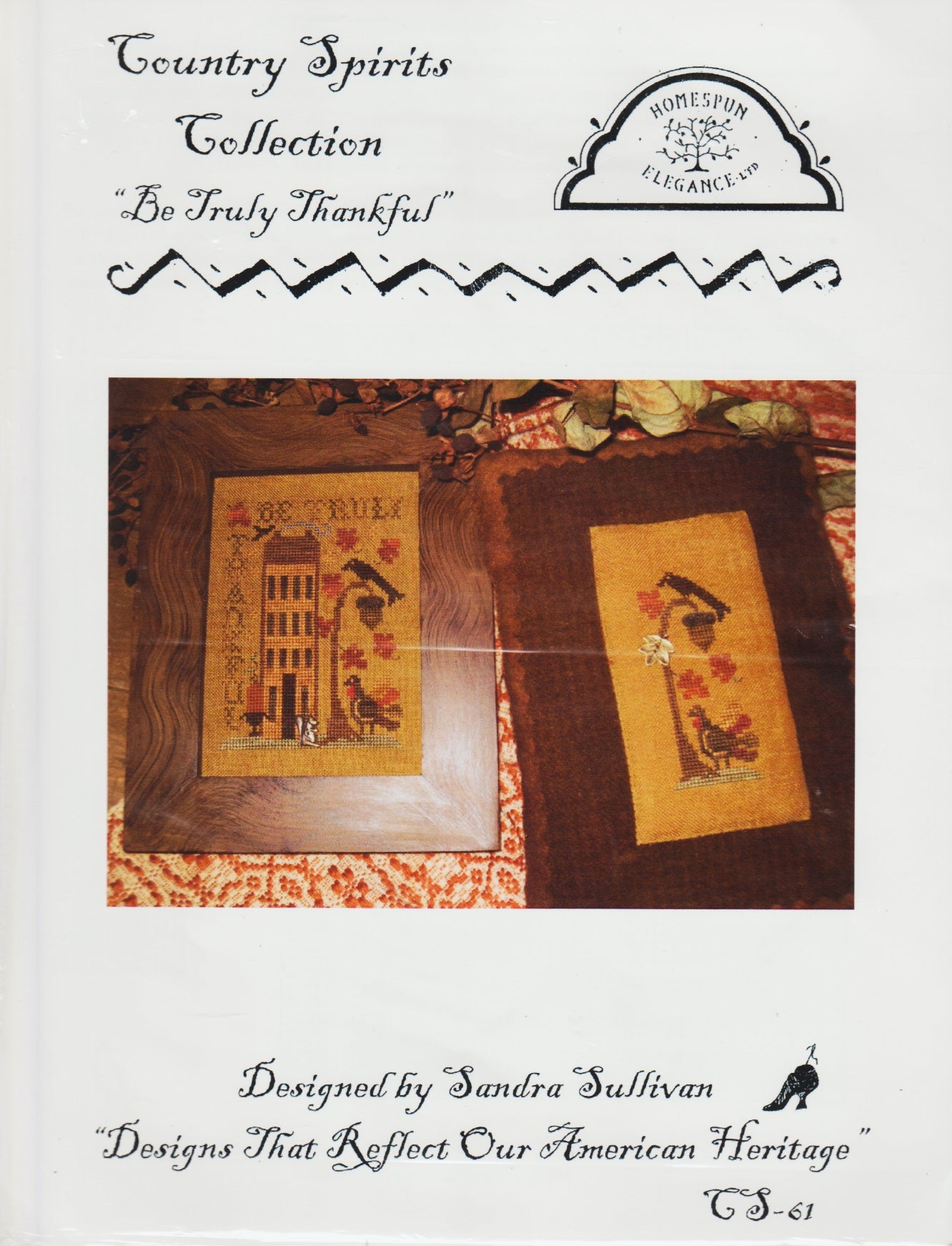Be Truly Thankful Country Spirits Collection, reprint Stitch Count: Pillow 26w x 60h, Frame 58w x 80h |