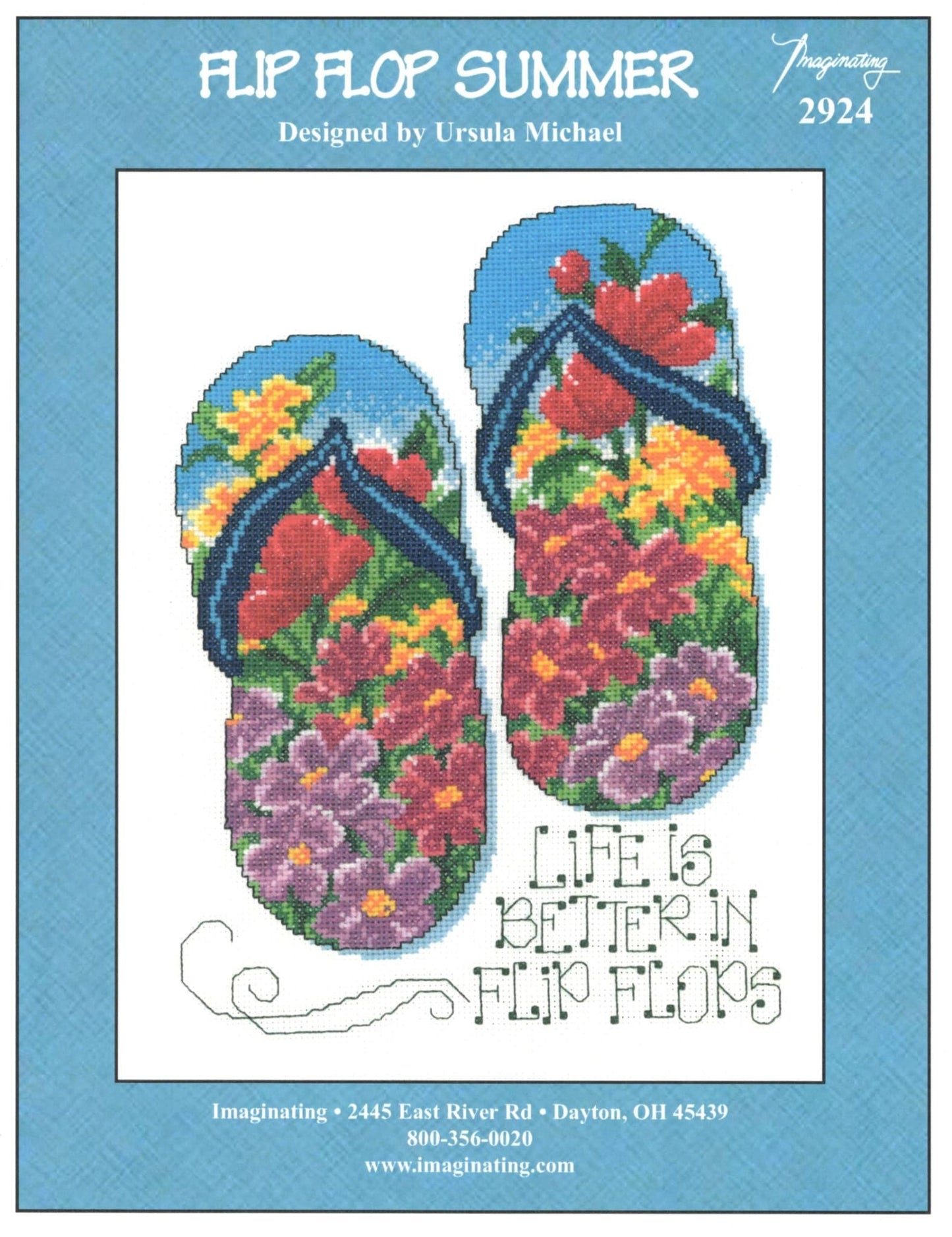 Flip Flop Summer, 2924 Life is better in flip flops. Model: stitched on 14 Ct. White Aida Stitch Count: 107x152 Designed by Ursula Michael. |