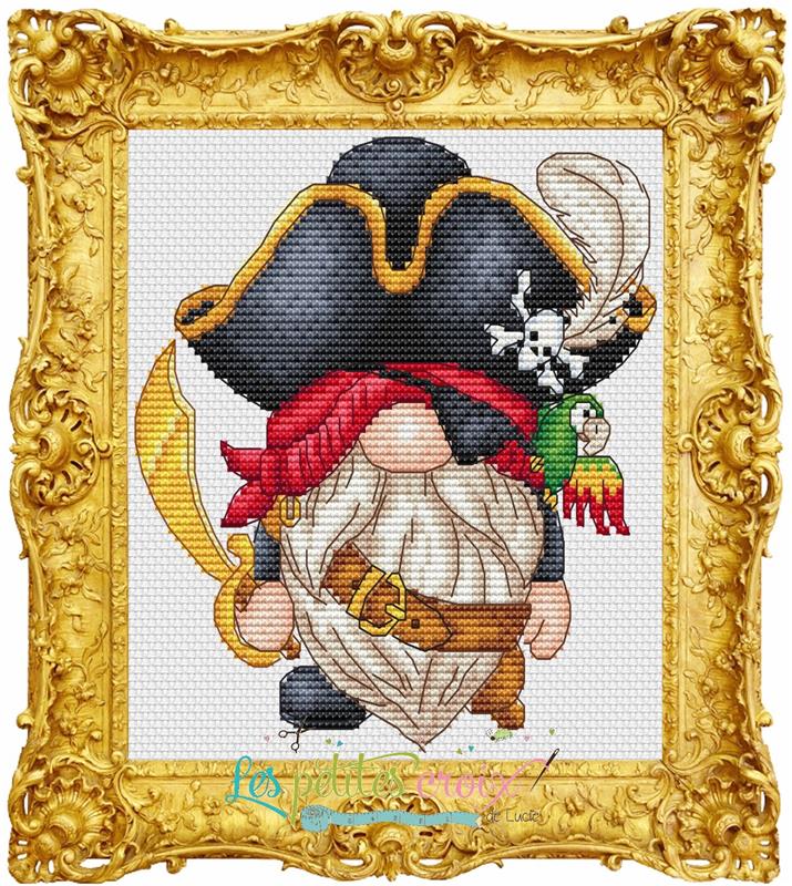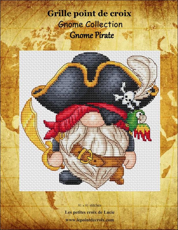 Gnome Pirate Model: stitched on 14ct Aida Stitch count: 81w x 81h Large format Color chart |