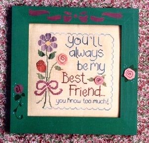 My Best Friend "You'll always be my best friend!" Model: stitched on 28ct Sandstone Tea Dyed Linen Stitch Count: 97H x 98W |