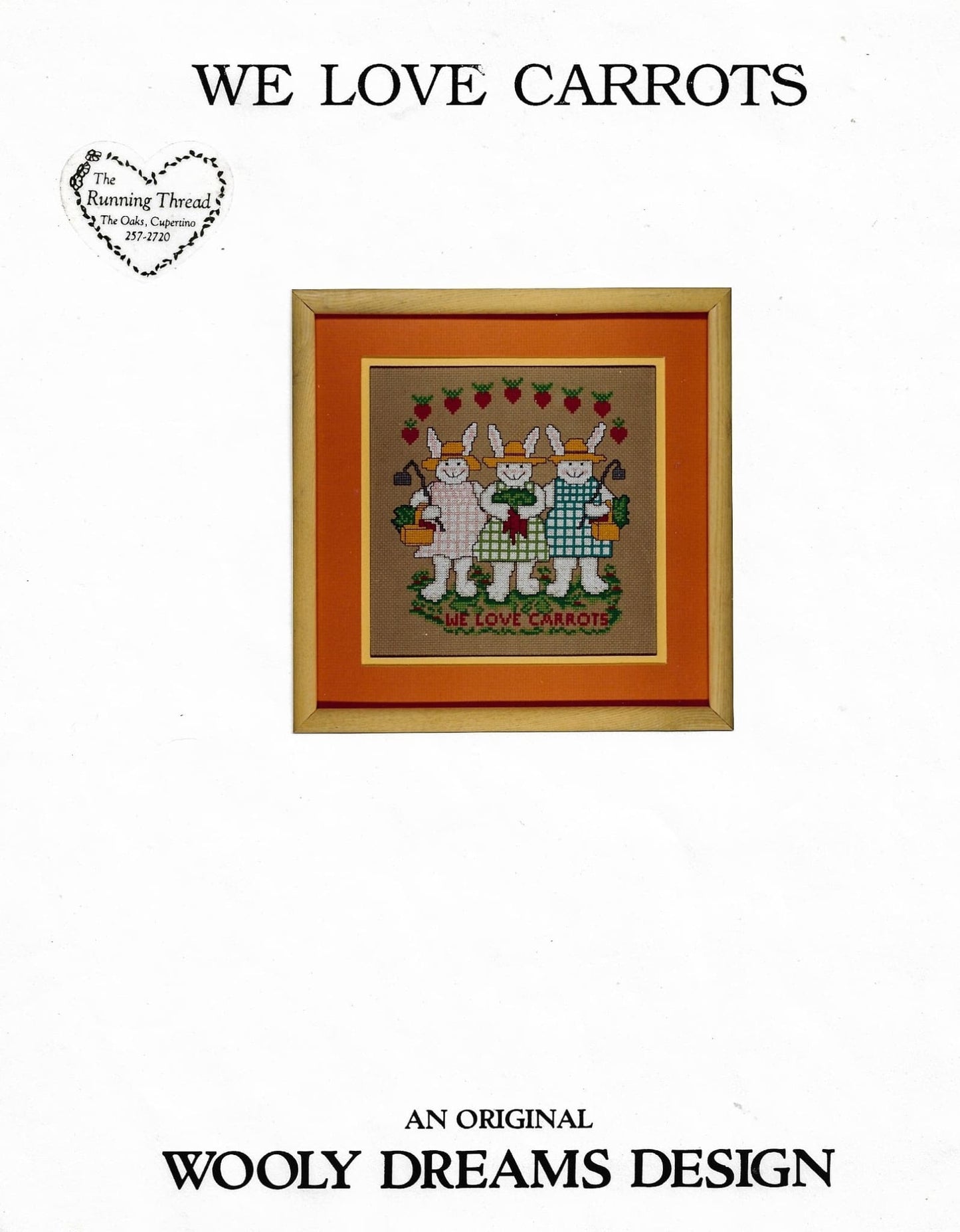 We Love Carrots Stitch Count: 112w x 109h Condition: Used, Very good, slight shelf wear, no marks or writing |